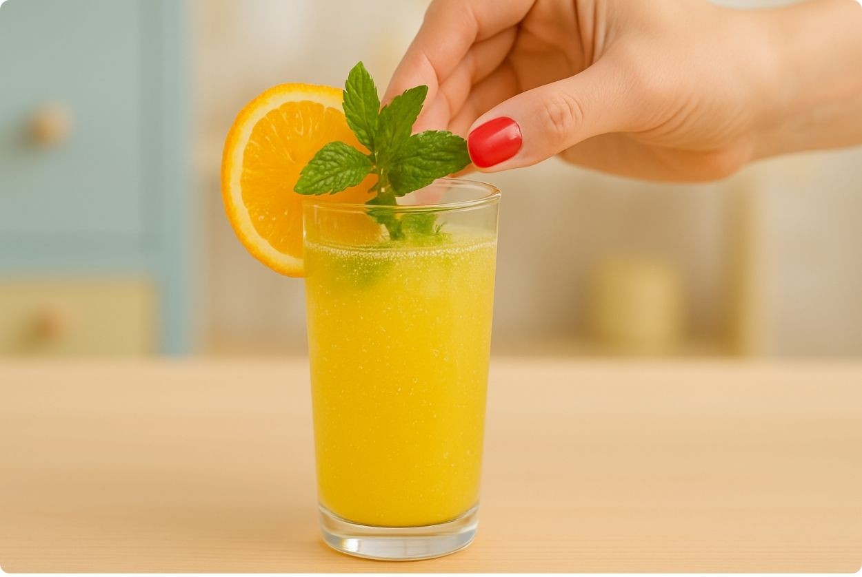 Made with freshly squeezed oranges, cooling mint leaves, and sparkling water — light, fizzy, and refreshing.