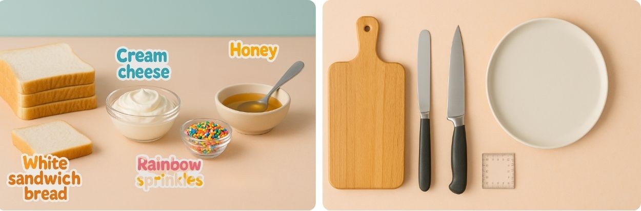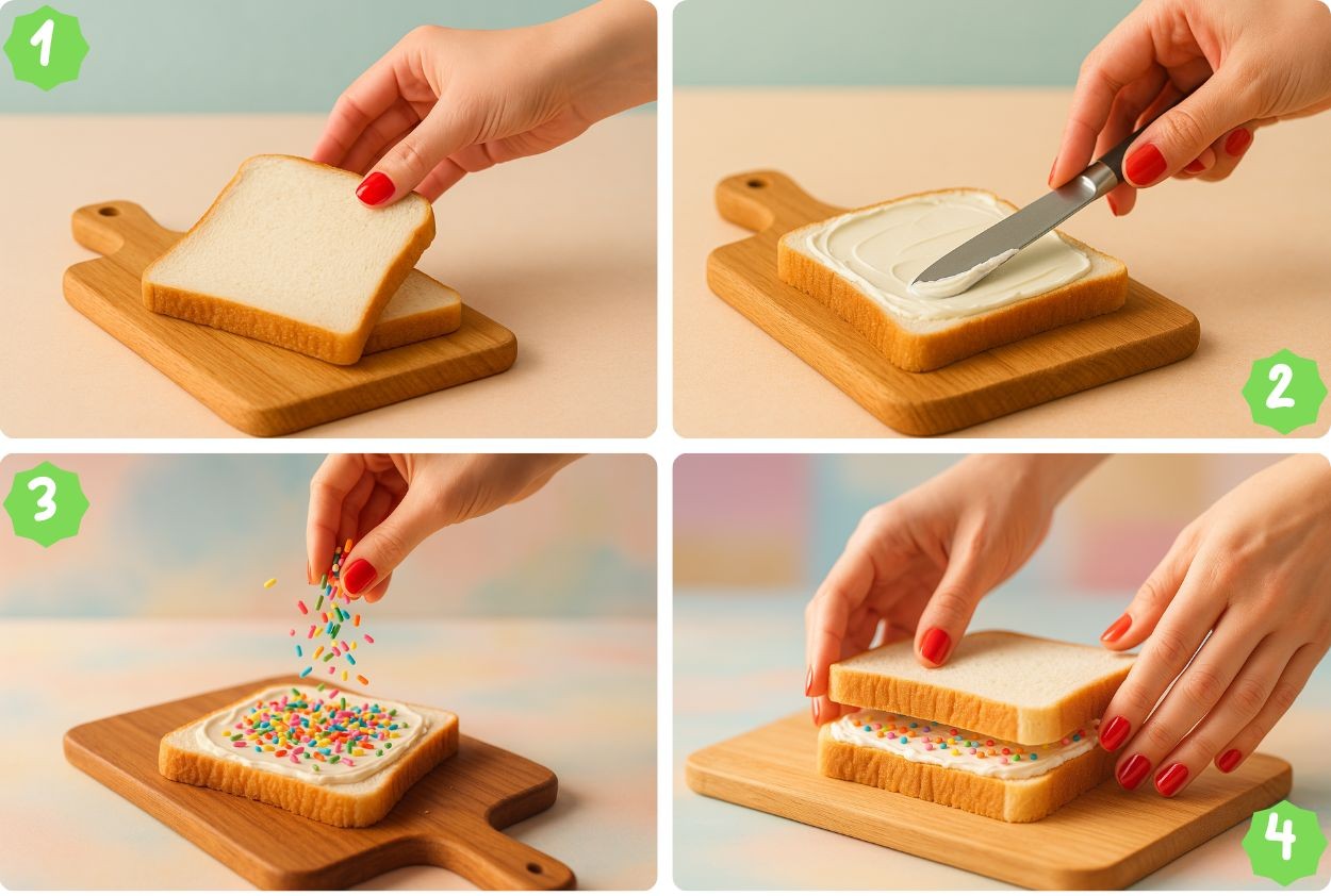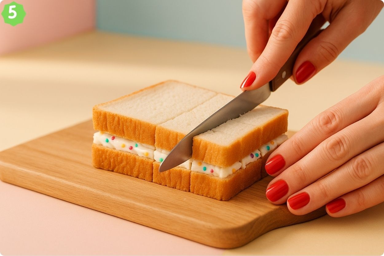 Soft bread layered with creamy filling and colorful sprinkles, cut into tiny party cubes — a fun, quick, no-cook treat for kids.