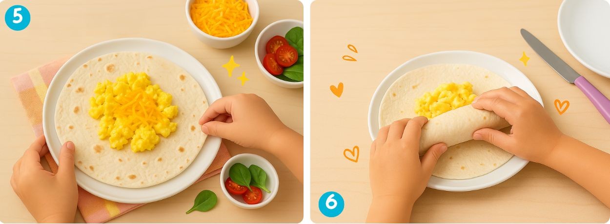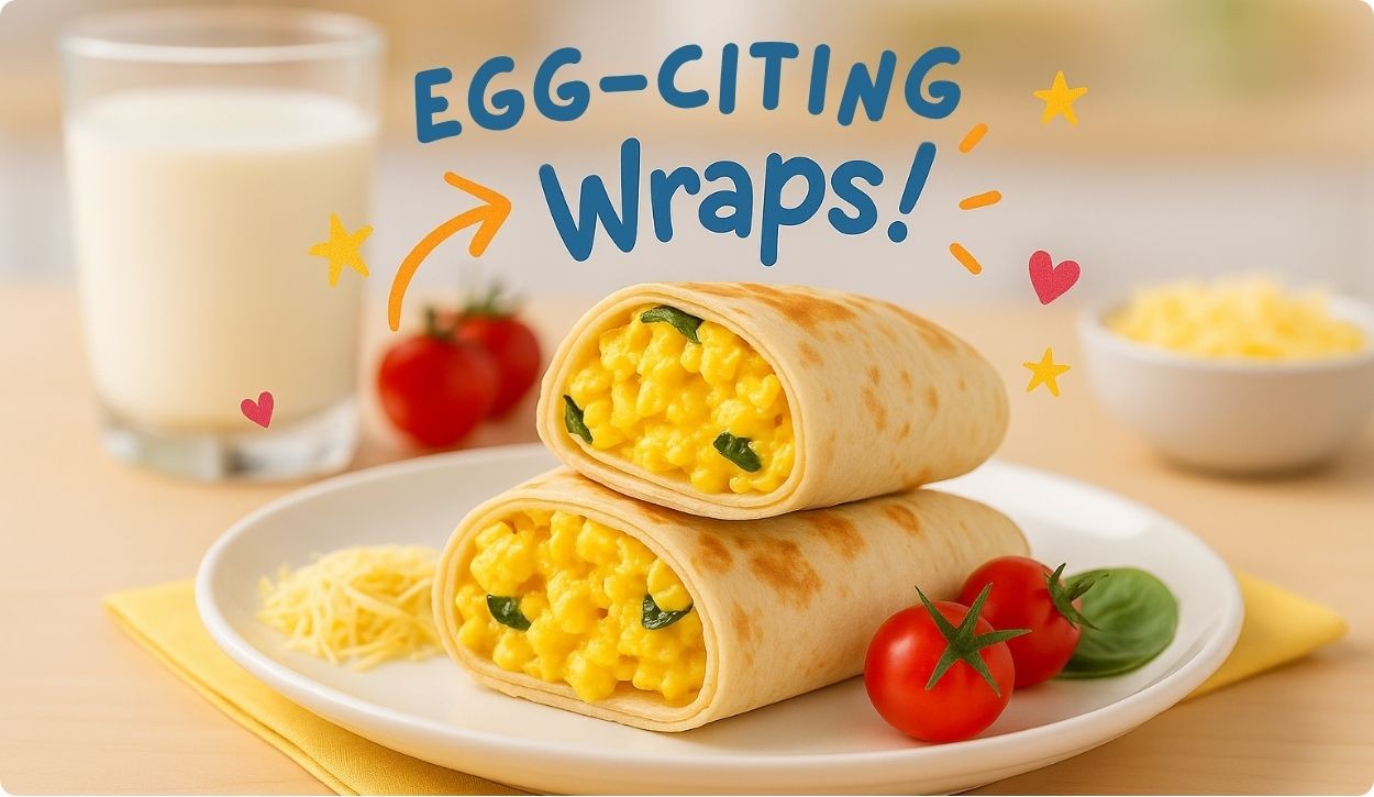 Warm, cheesy scrambled egg wraps! Quick, filling, and perfect for breakfast or lunchboxes.