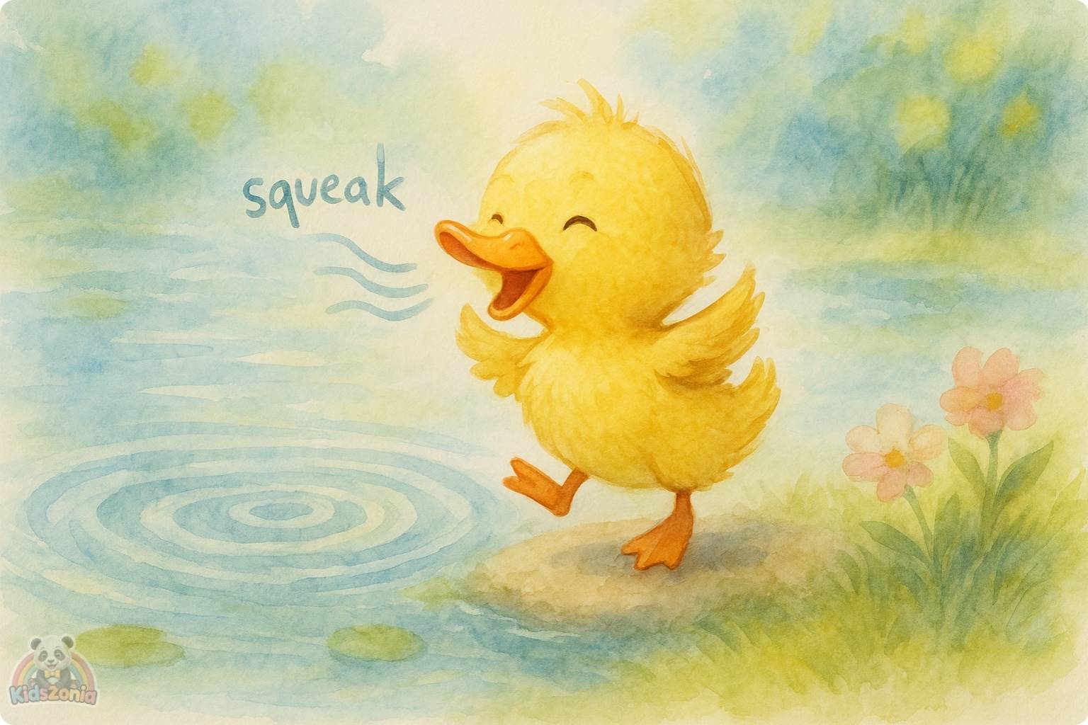 The duckling practiced… squeak, squeak, squeak!