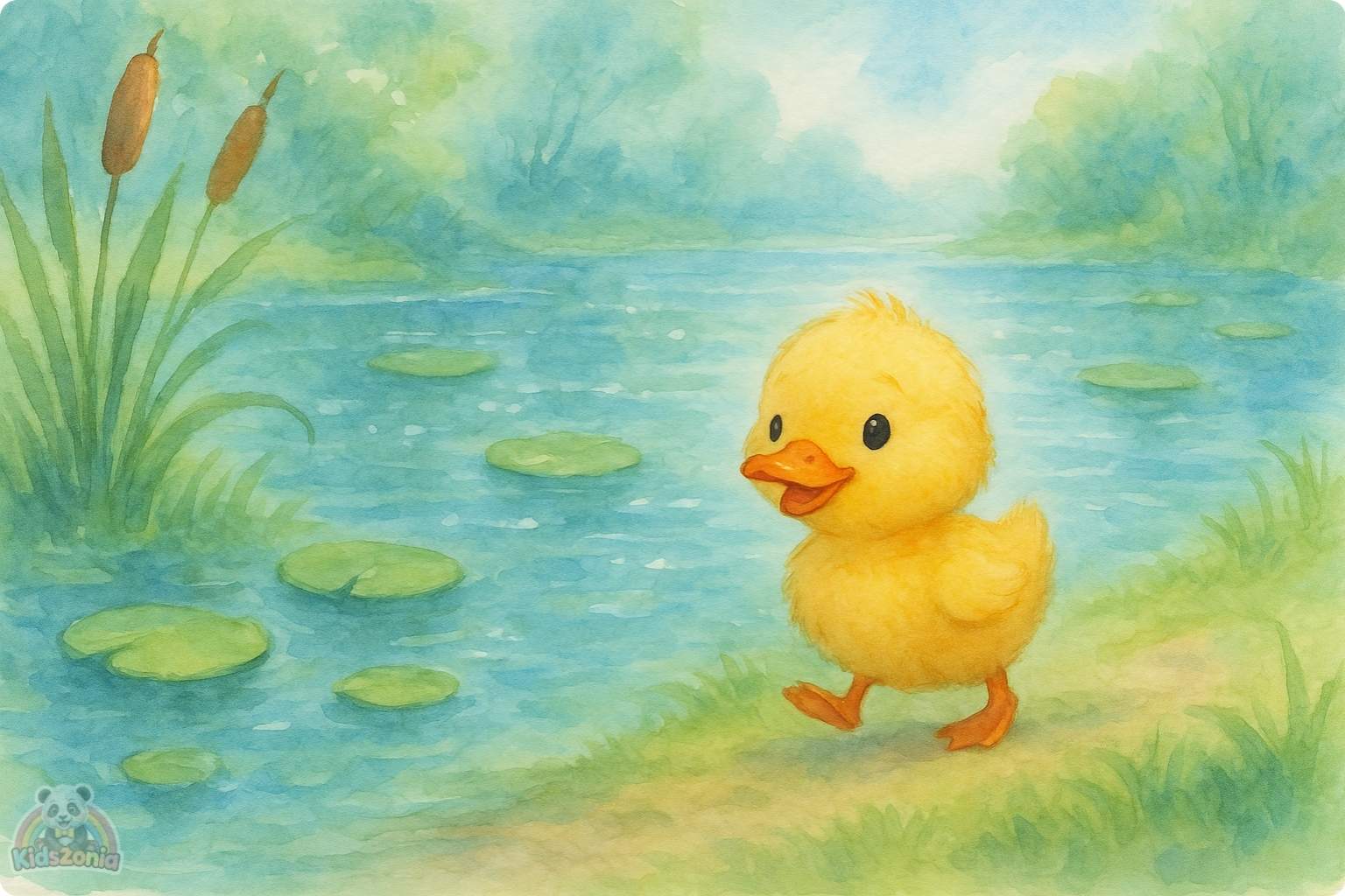Once upon a time, by a sunny pond, lived a fluffy little duckling.