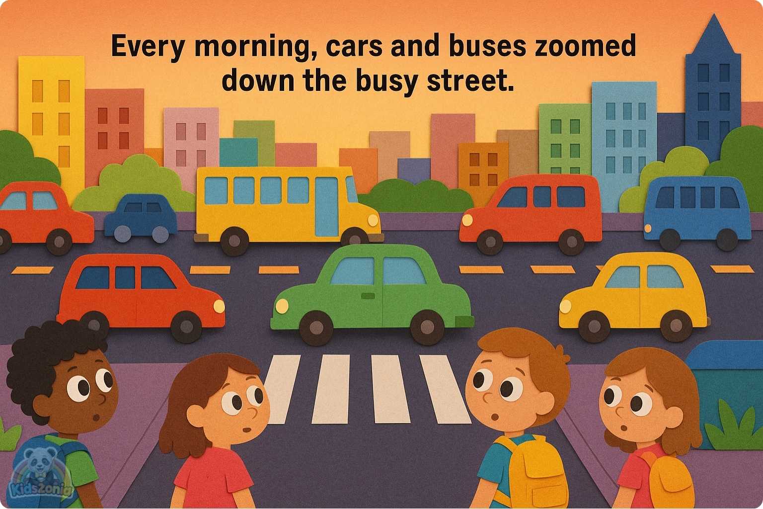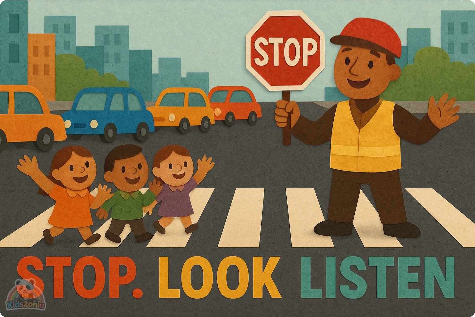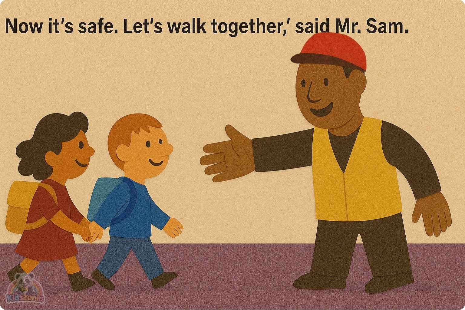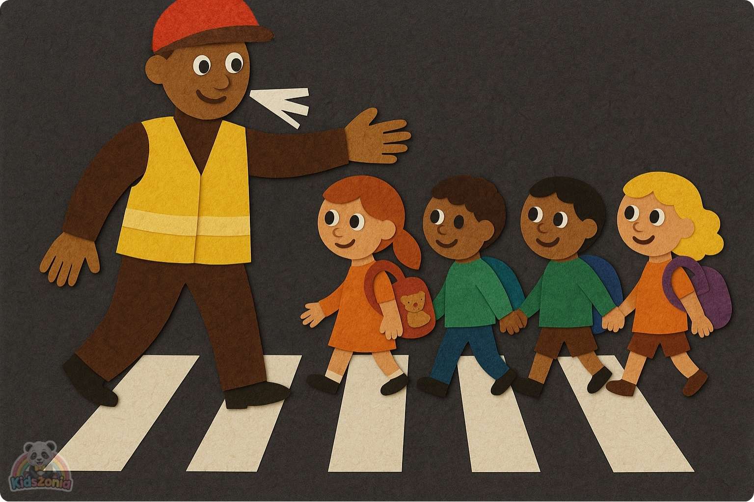 A caring crossing guard teaches everyone that safety, patience, and kindness go hand in hand!