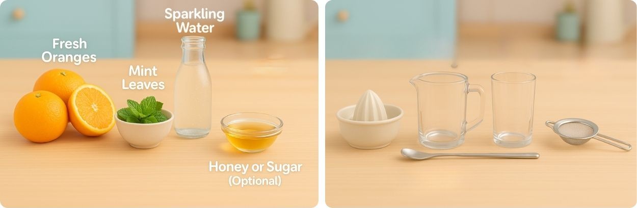 Made with freshly squeezed oranges, cooling mint leaves, and sparkling water — light, fizzy, and refreshing.