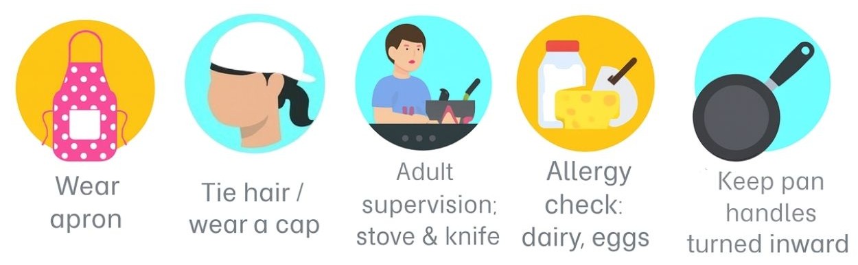 ✅ Stirring gently on stove (with adult help)