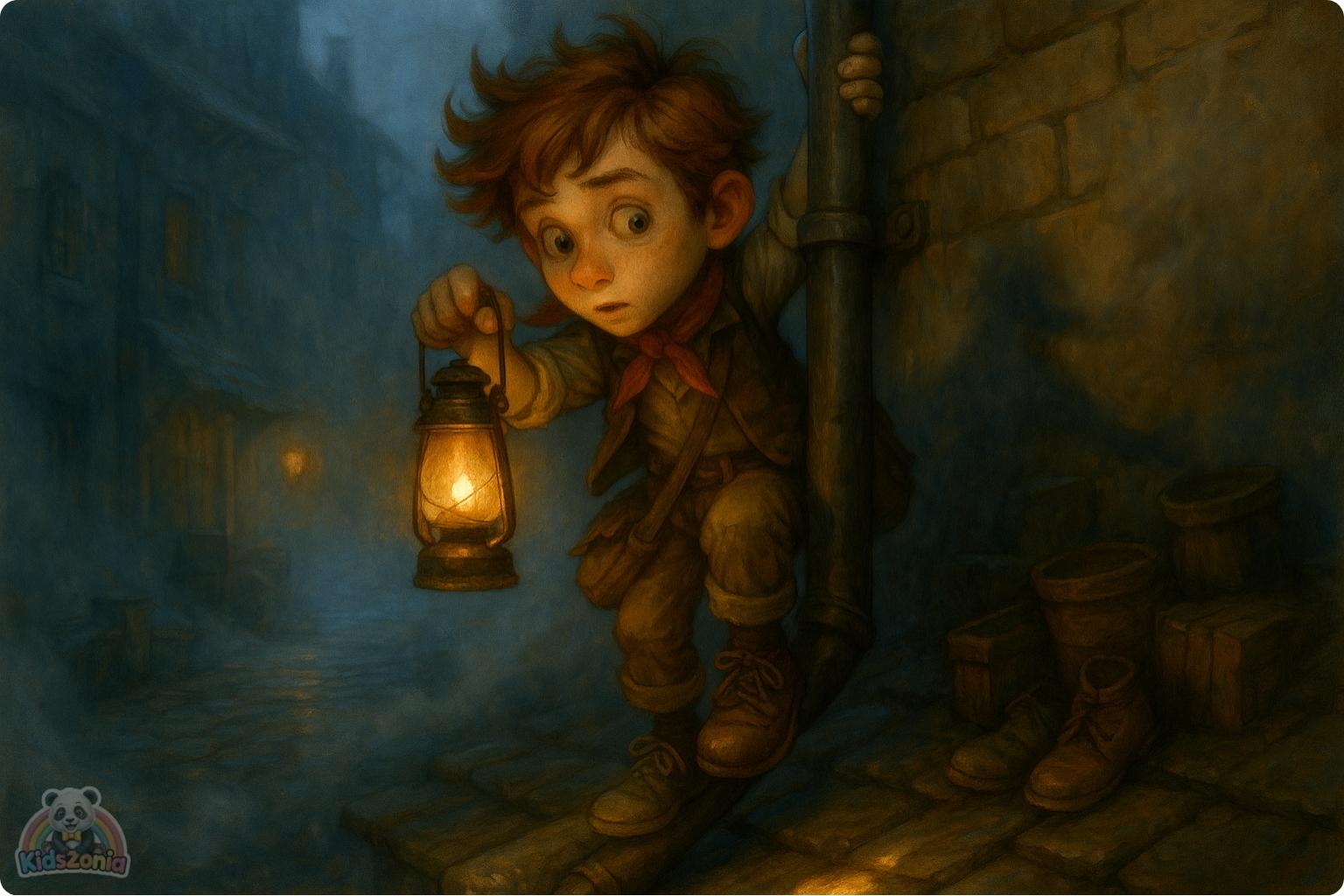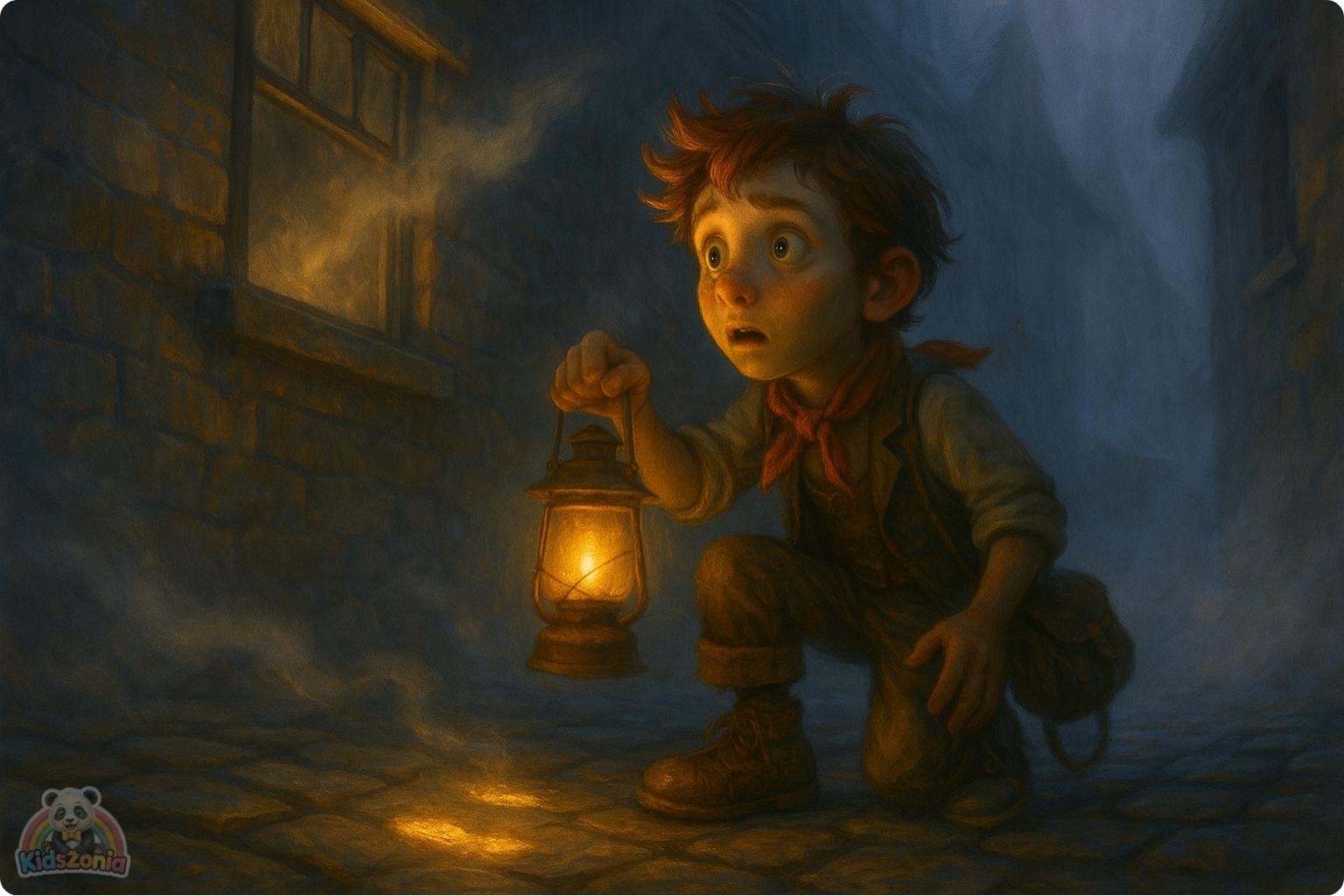 The fog around Pip’s boots began to stir. Not drifting — moving. It curled along the cobblestones like it knew the way, forming a twisting path that waited for him to follow. He crouched low, eyes wide, lantern trembling in his hand. “The fog’s alive,” he whispered, half in awe, half in fear.