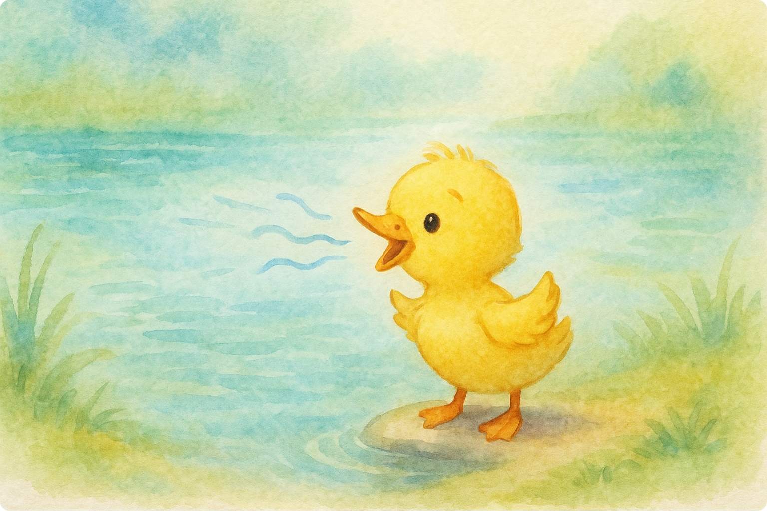 Once upon a time, by a sunny pond, lived a fluffy little duckling.