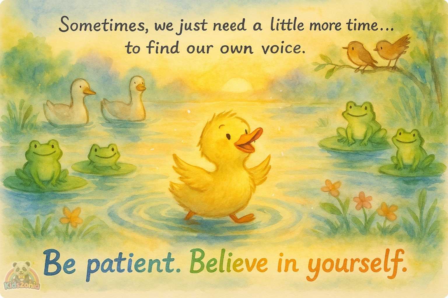A tiny duckling finds its voice — and learns that every little quack matters in the big, wide pond!