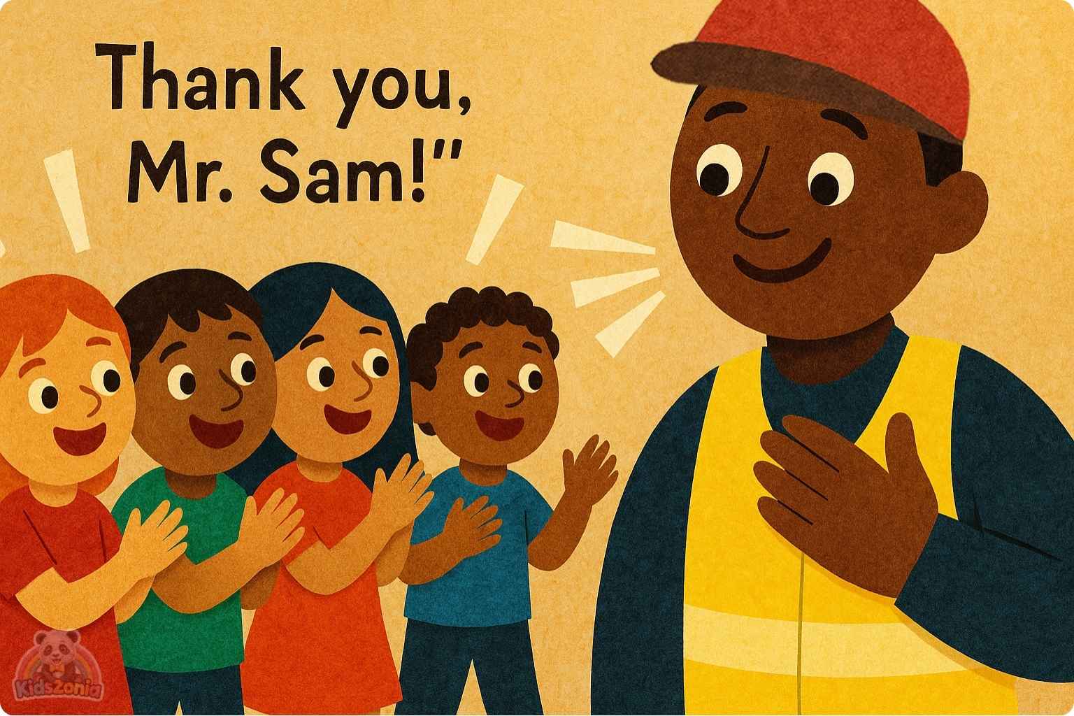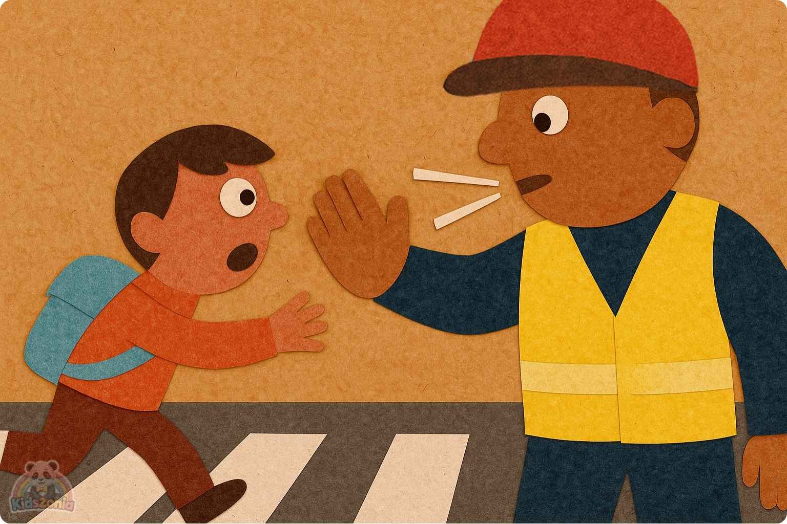 A caring crossing guard teaches everyone that safety, patience, and kindness go hand in hand!